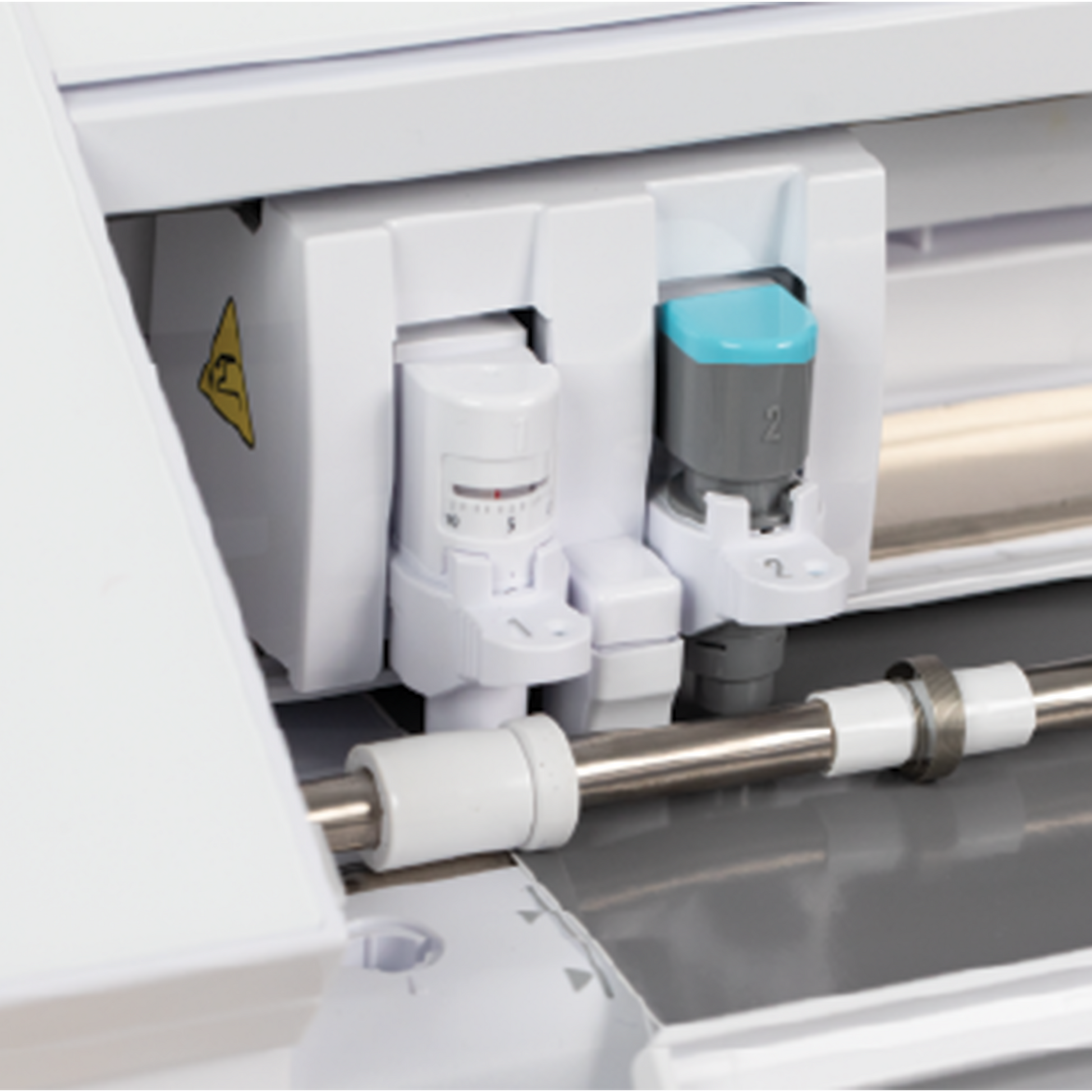 Cut or sketch using a variety of available tools with the Cameo 4 series' dual carriage system. Carriage 1 is for standard cutting with the included AutoBlade. Carriage 2 provides more power for use with specialty tools, such as the Rotary Blade or Punch Tool.